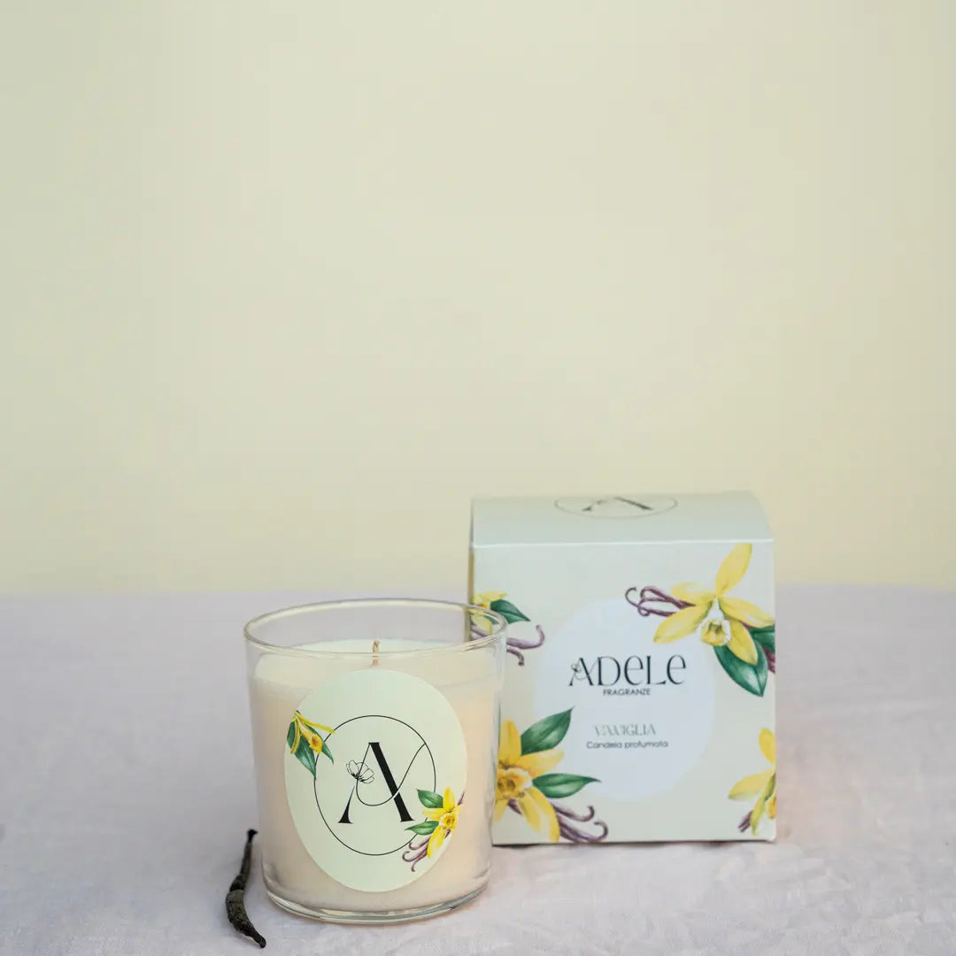 Candela profumata a base di cera di soia e una piccola quantità di paraffina ultraraffinata per garantire una corretta combustione e preservare la fragranza nel tempo.