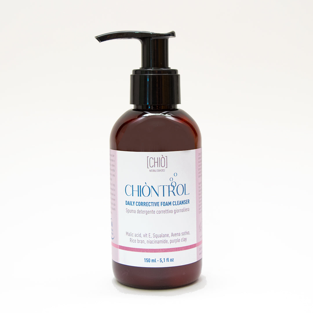 CHIÒNTROL by Chiò è una spuma detergente correttiva che effettua una delicata ma efficiente esfoliazione quotidiana, ideale per pelle sottile, con discromie, inspessita, matura, secca, mista, asfittica, segnata dal tempo.
