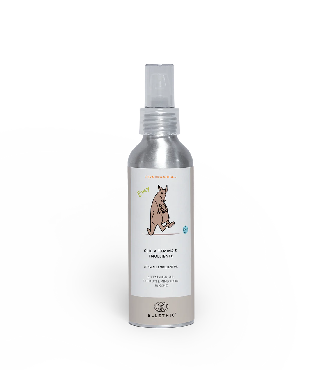 Un olio puro e multifunzionale con un'alta percentuale di Vitamina E pura. Ha un'azione protettiva, emolliente ed elasticizzante. Può essere utilizzato su qualsiasi parte del corpo della mamma e del bambino (seno, capezzoli, pancia, genitali, mucose). Sul retro dell'etichetta troverai un QR CODE da scansionare per poter scoprire insieme ai tuoi bimbi la bellissima storia del canguro Emy!
