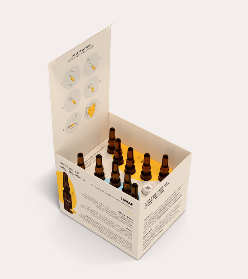 Grazie alla combinazione di vitamina C, acido lattico, peptidi e DMAE, abbiamo creato una formula che dona alla tua pelle una luminosità eccezionale ed un effetto lifting subito visibile. Il trattamento Rise & Shine è composto da due fiale perfettamente complementari che donano alla pelle un aspetto più radioso, levigato e sodo. Le fiale DMAE, applicate al mattino, aiutano a rassodare e levigare la pelle, apportando nutrienti essenziali, mentre le fiale con vitamina C + acido lattico, applicate alla sera, esfoliano delicatamente, illuminano e proteggono dai danni dei radicali liberi.